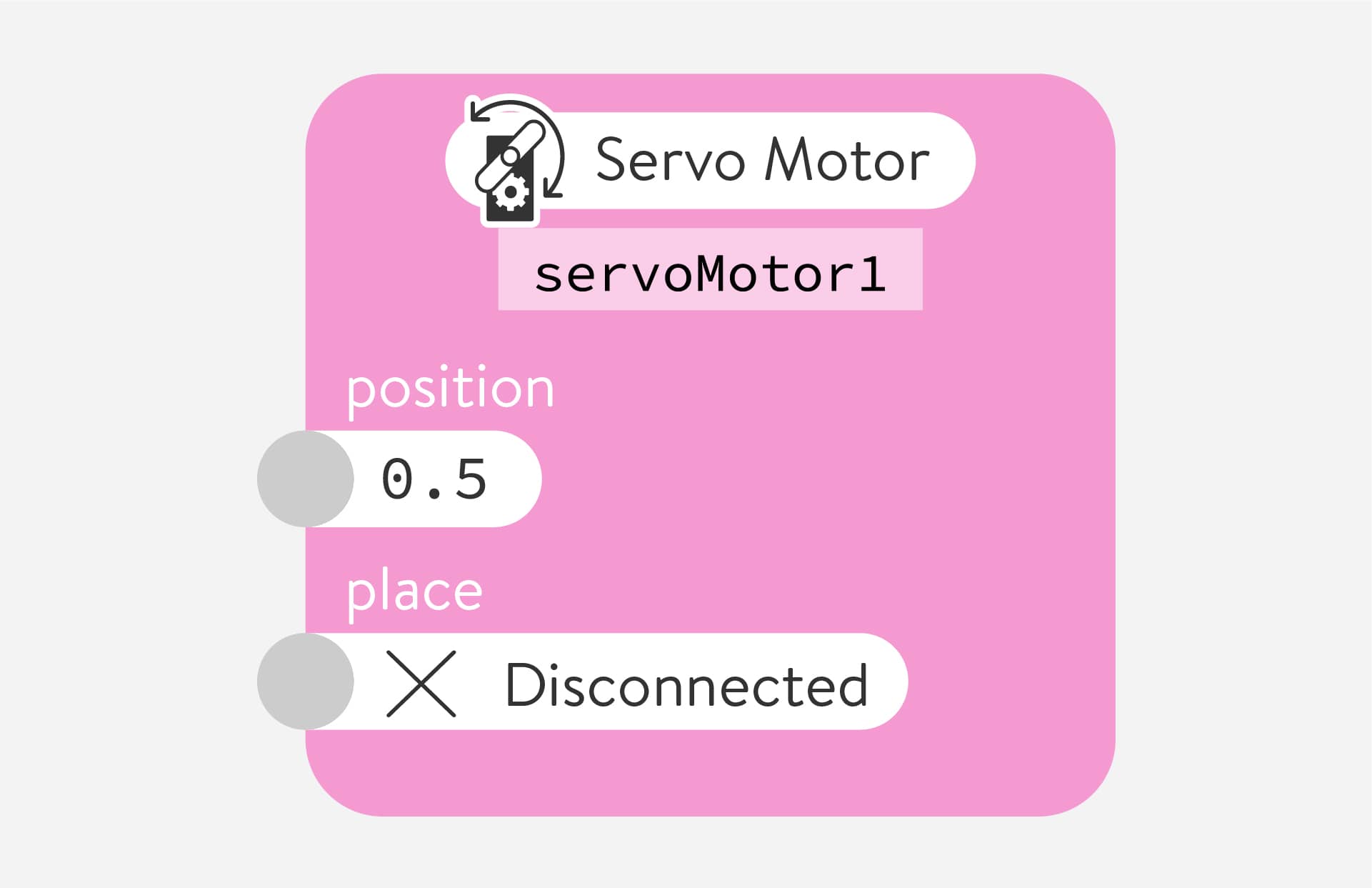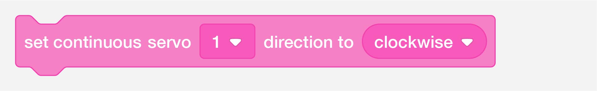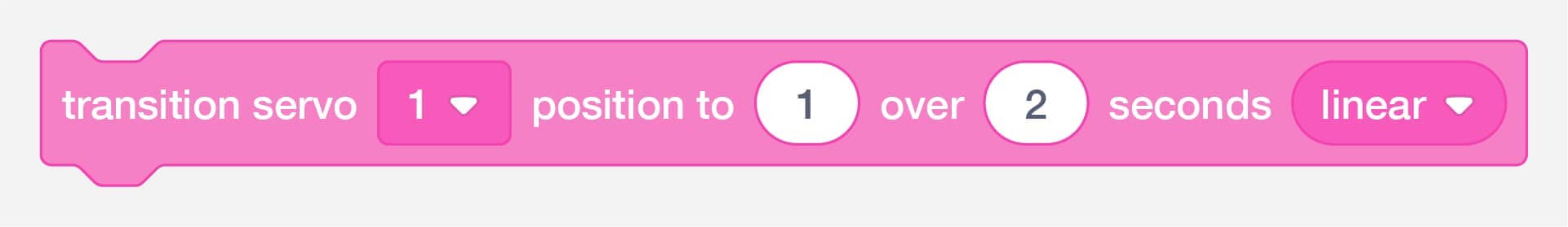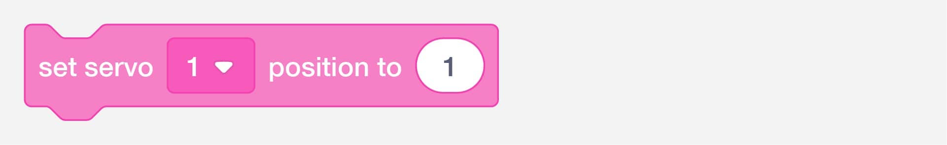 Control servo motors connected to the servo motor backpack. Servo motors have an arm that can move to a specific position. Maximum movement is a little less than half a rotation, about 120 - 180 degrees, depending on the motor.