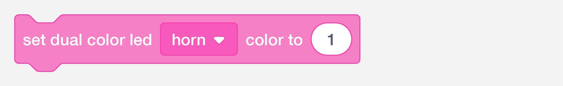 Control Light-Emitting Diodes (LEDs) with two colors. The red-blue LEDs that come with the Quirkbot kits are such LEDs. To use this node connect the LEDs to the arms, legs, or horn.