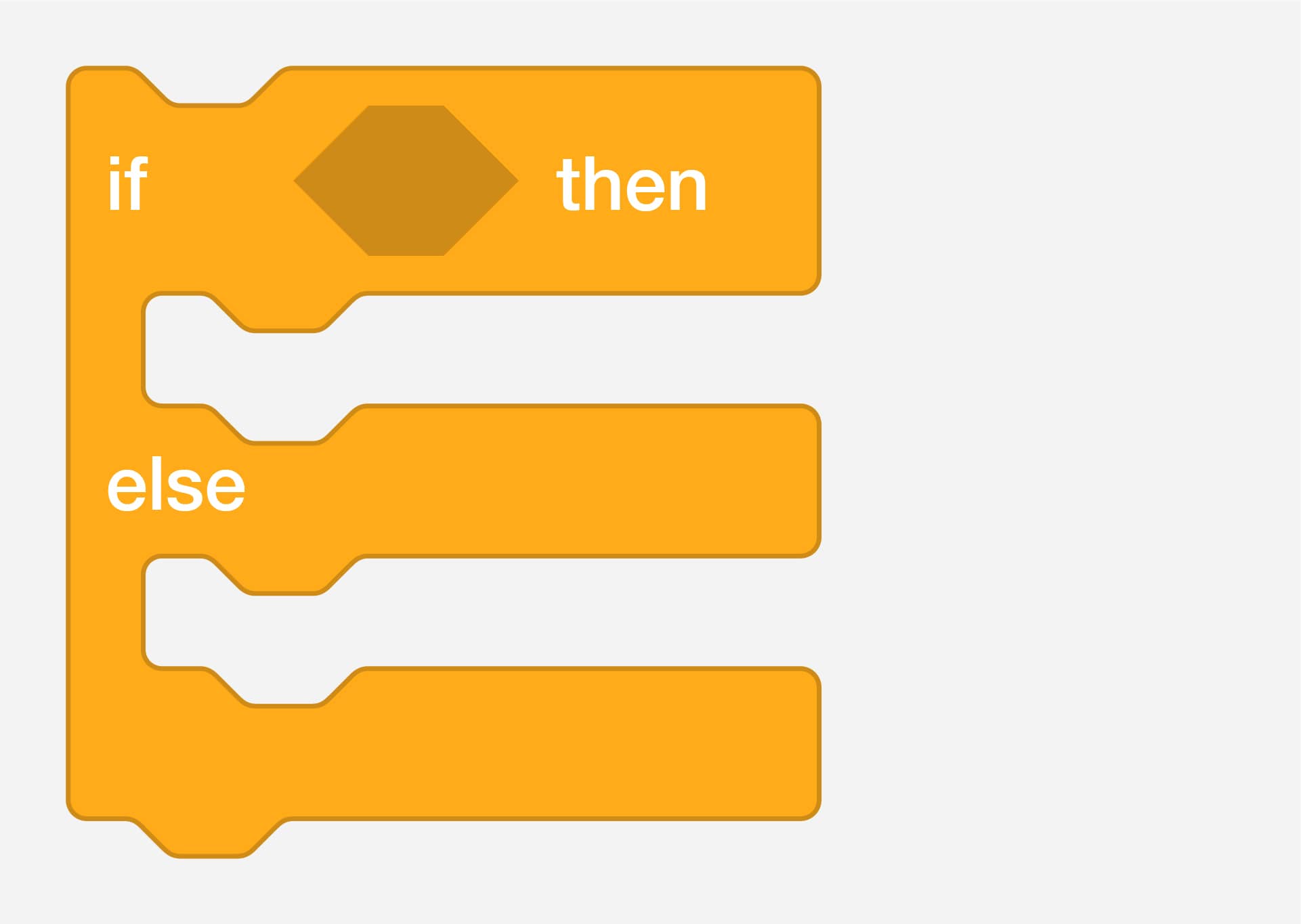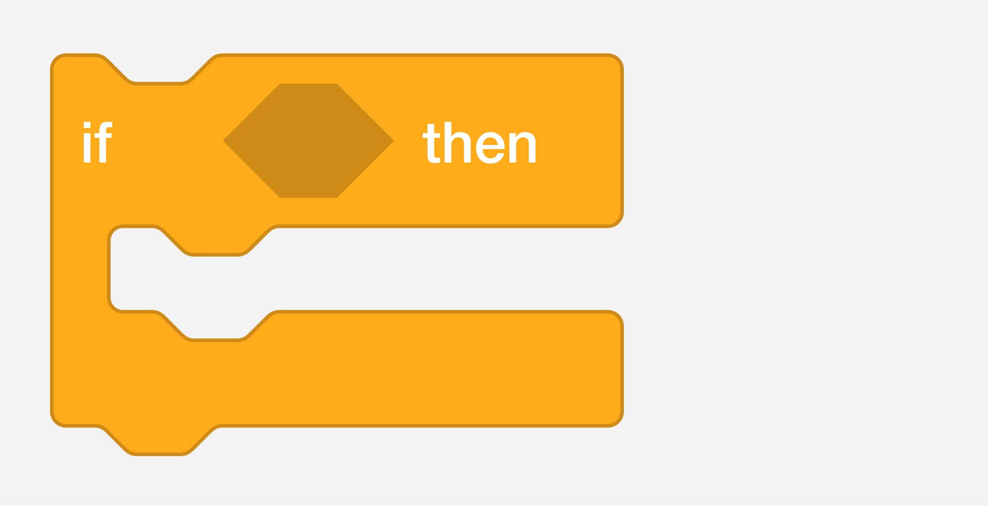 Checks the condition so that if the condition is true, the blocks inside the first half will activate. If the condition is false, the blocks inside the second half will activate.