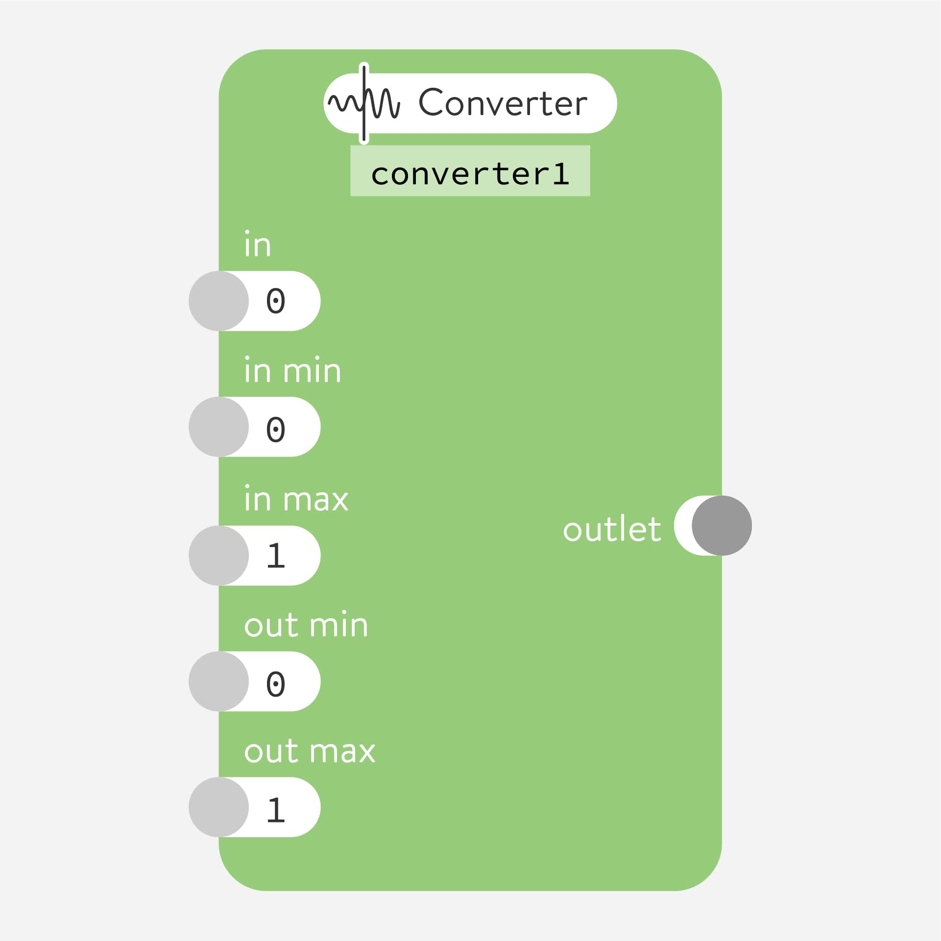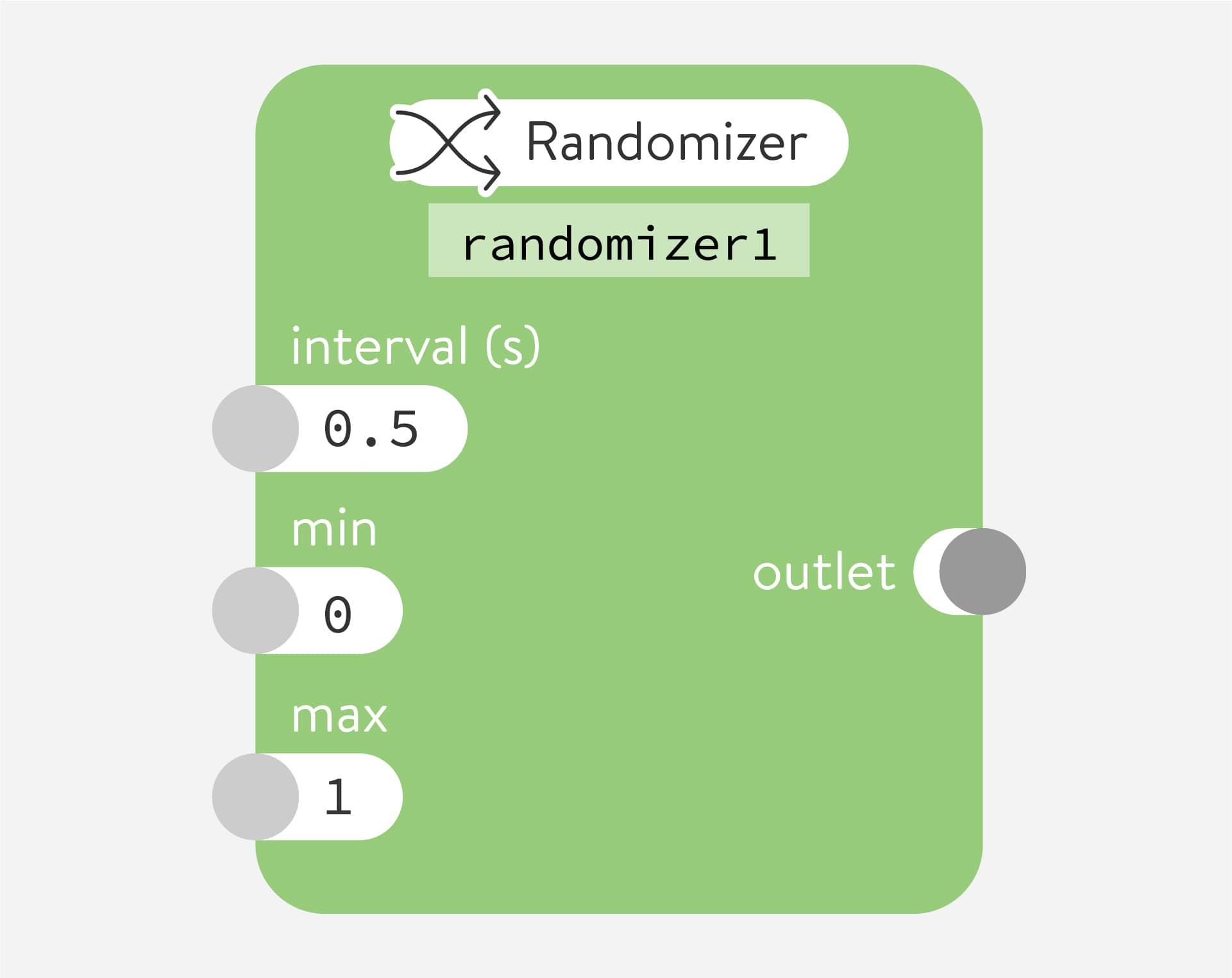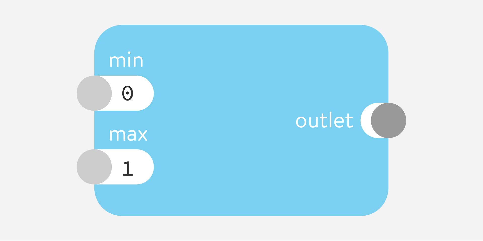 Many nodes have minimum and maximum (min and max) number parameters that control the smallest and largest values sent by the outlet.