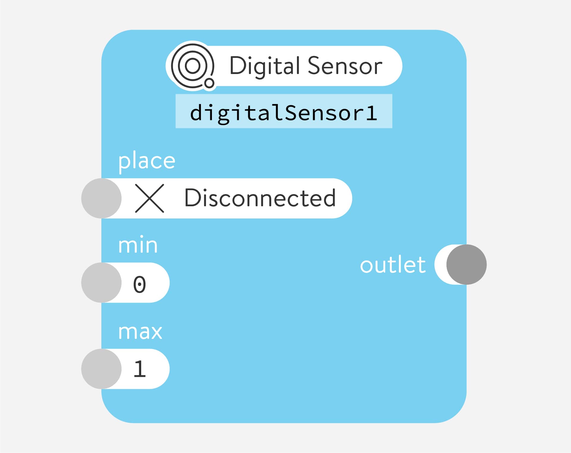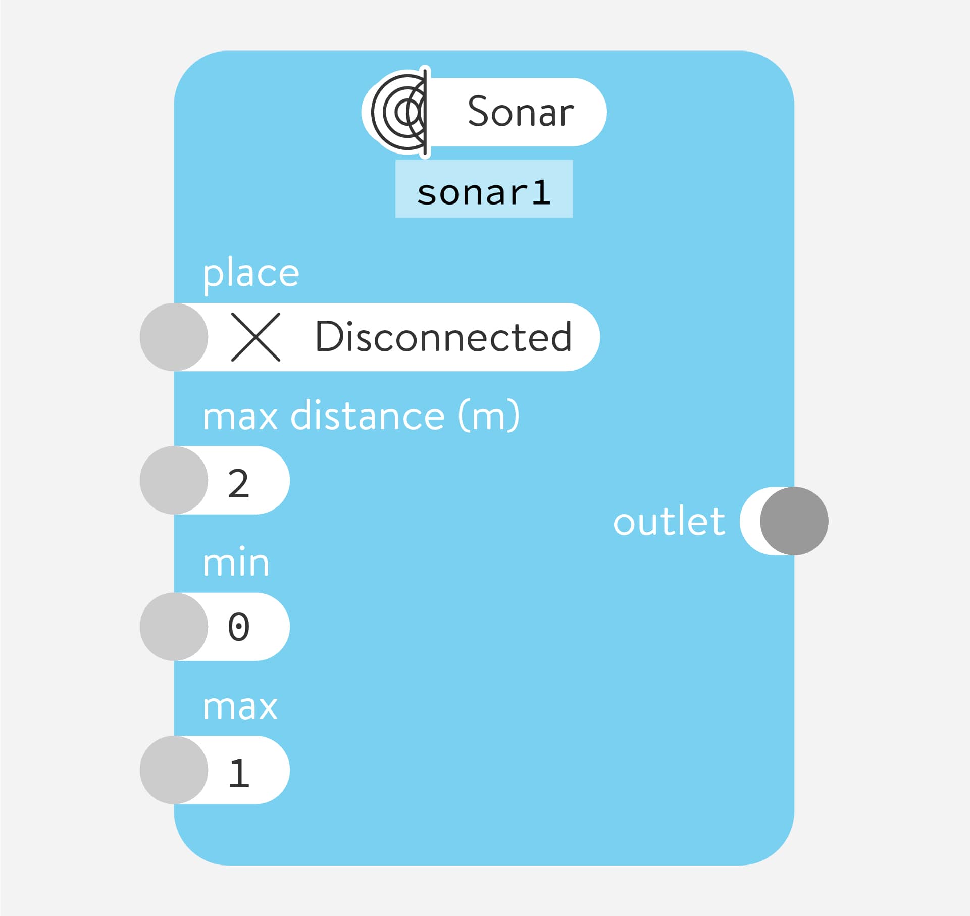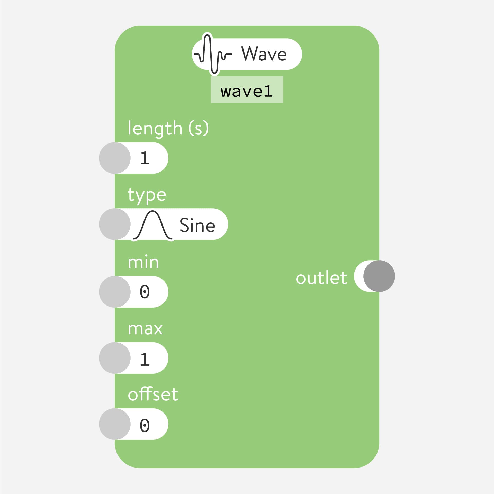 Many nodes have minimum and maximum (min and max) number parameters that control the smallest and largest values sent by the outlet.