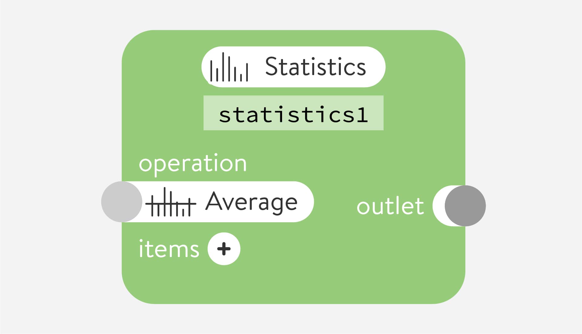 Performs a statistical analysis on a number of input items. Operations available are: Average value, Minimum value, Maximum value, and a Summation of all the values.