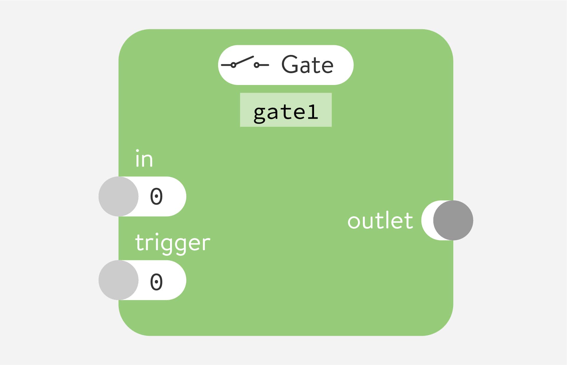 Gate is used to turn on and off a stream of numbers. It's inserted between two other nodes to stop or allow data to go from one to the other.