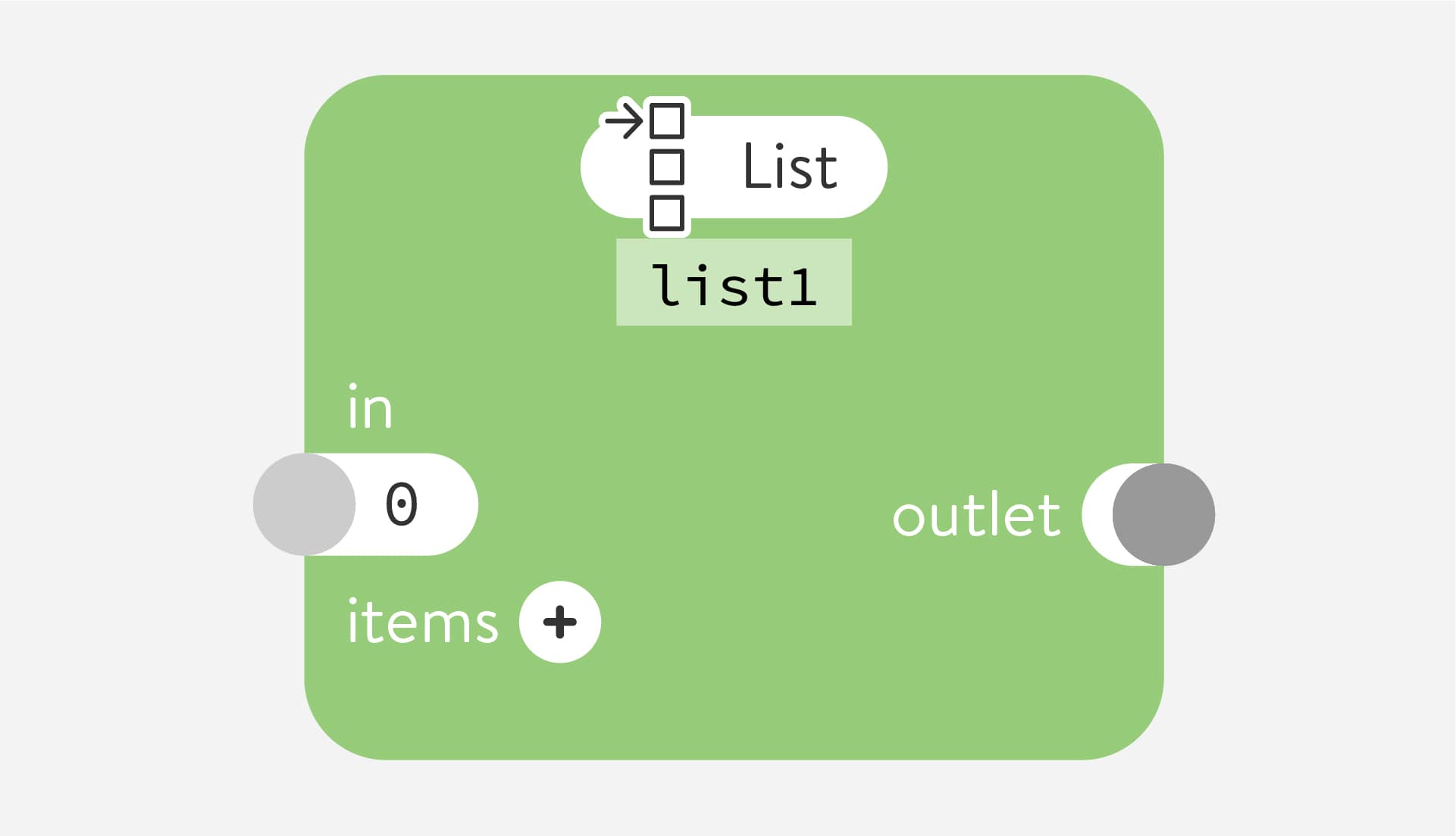 Create a list of any numbers or values. You can add up to 100 items by clicking the + sign and removing items by clicking the - sign next to them. The items on the list can also be used as routable inputs for any stream of numbers.