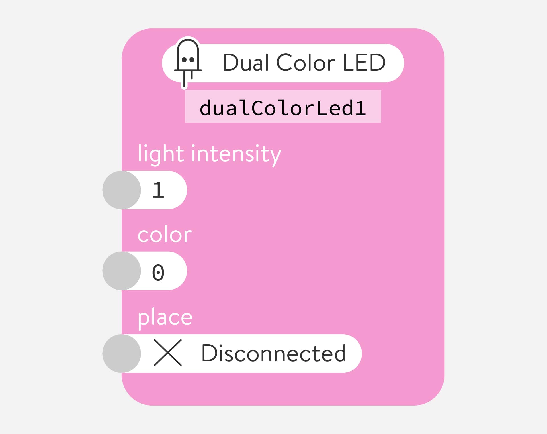 Control Light-Emitting Diodes (LEDs). It controls both LEDs integrated in the Quirkbot like the eyes, or loose, external LEDs you attach to the arms, legs, and horn.