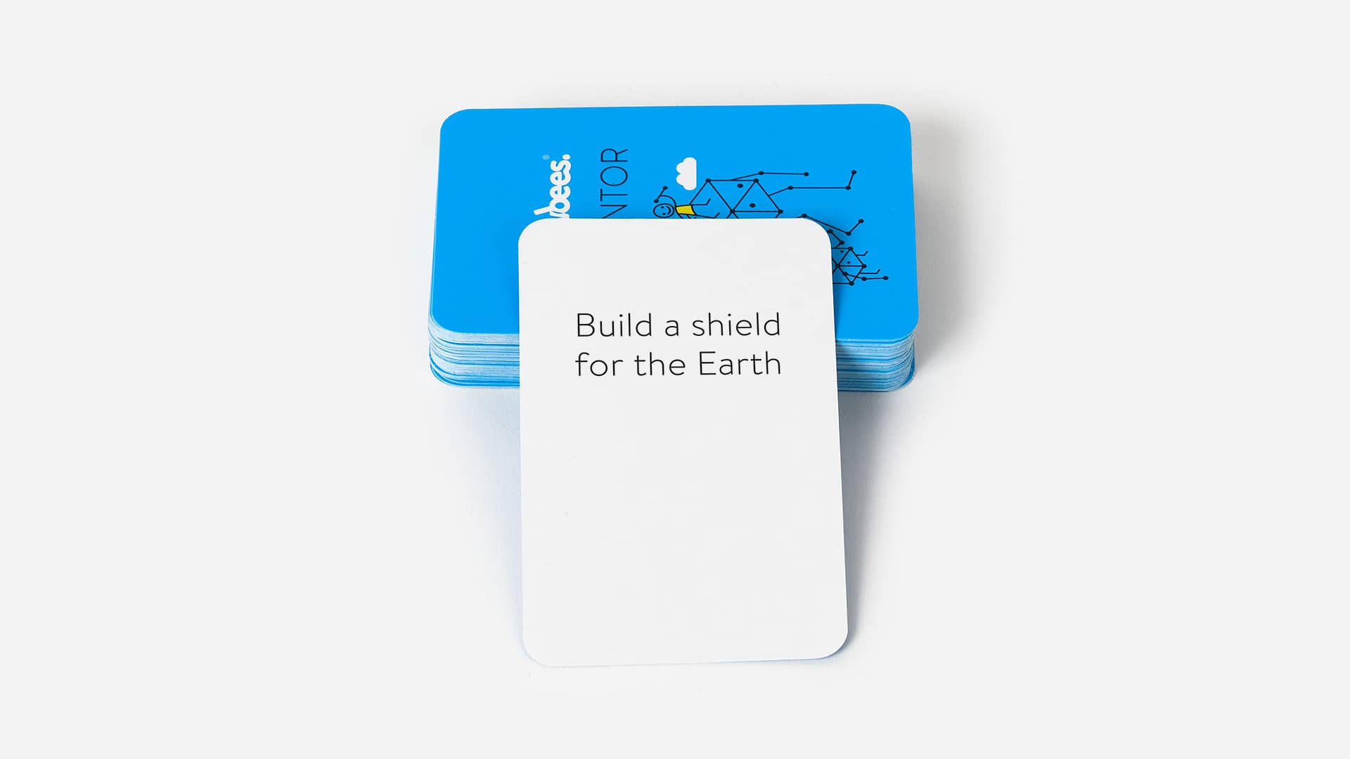 Create a robust shield that safeguards the Earth from potential threats within and outside the atmosphere. Observe Fanny's design process for the selected challenge card from the Pocketful of Ideas deck.