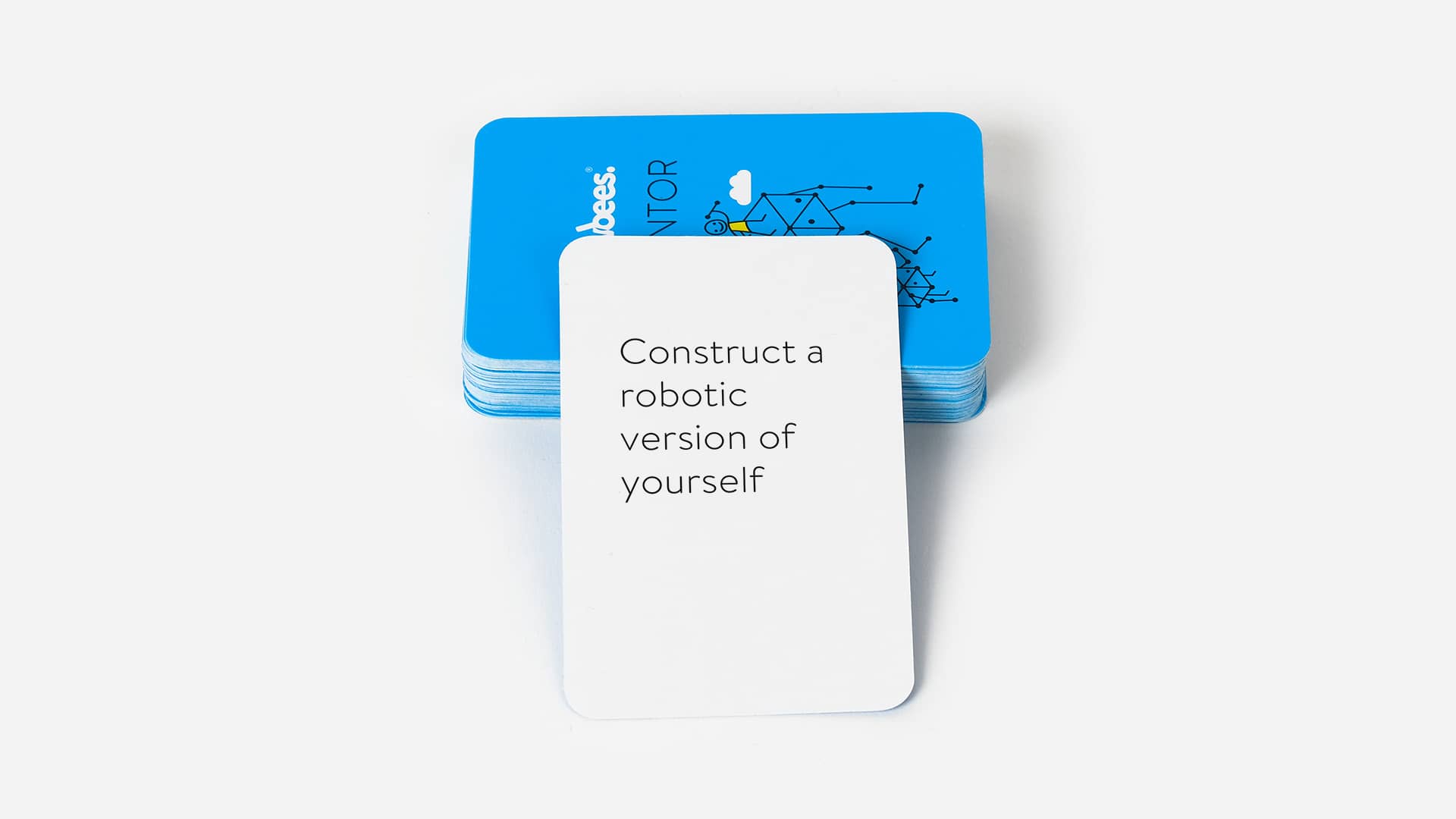 Design a robotic replica to fill in as a substitute. Observe Fanny's design process for the selected challenge card from the Pocketful of Ideas deck.