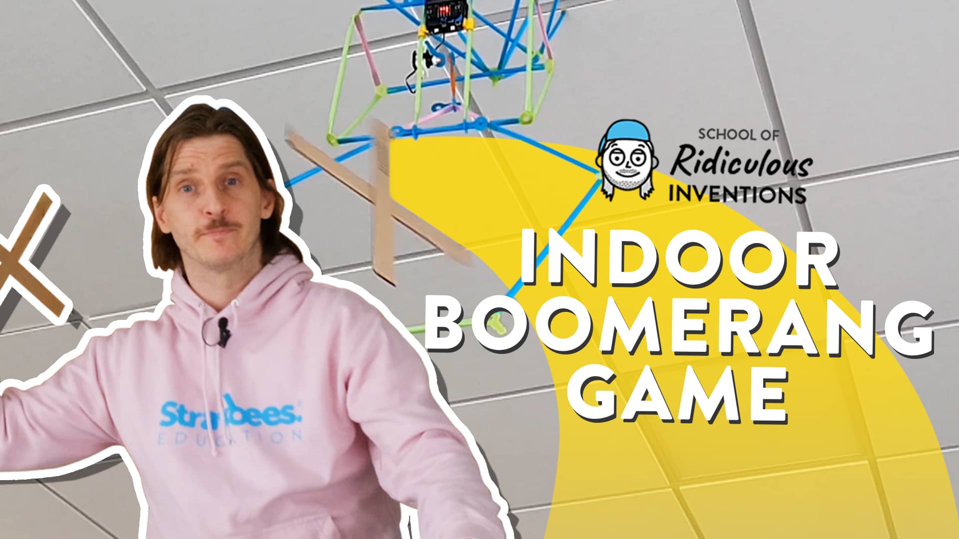 Watch how Erik invents a simple boomerang target and then ups his game by coming up with an automated micro:bit robotic target to reset between each throw from the ceiling.