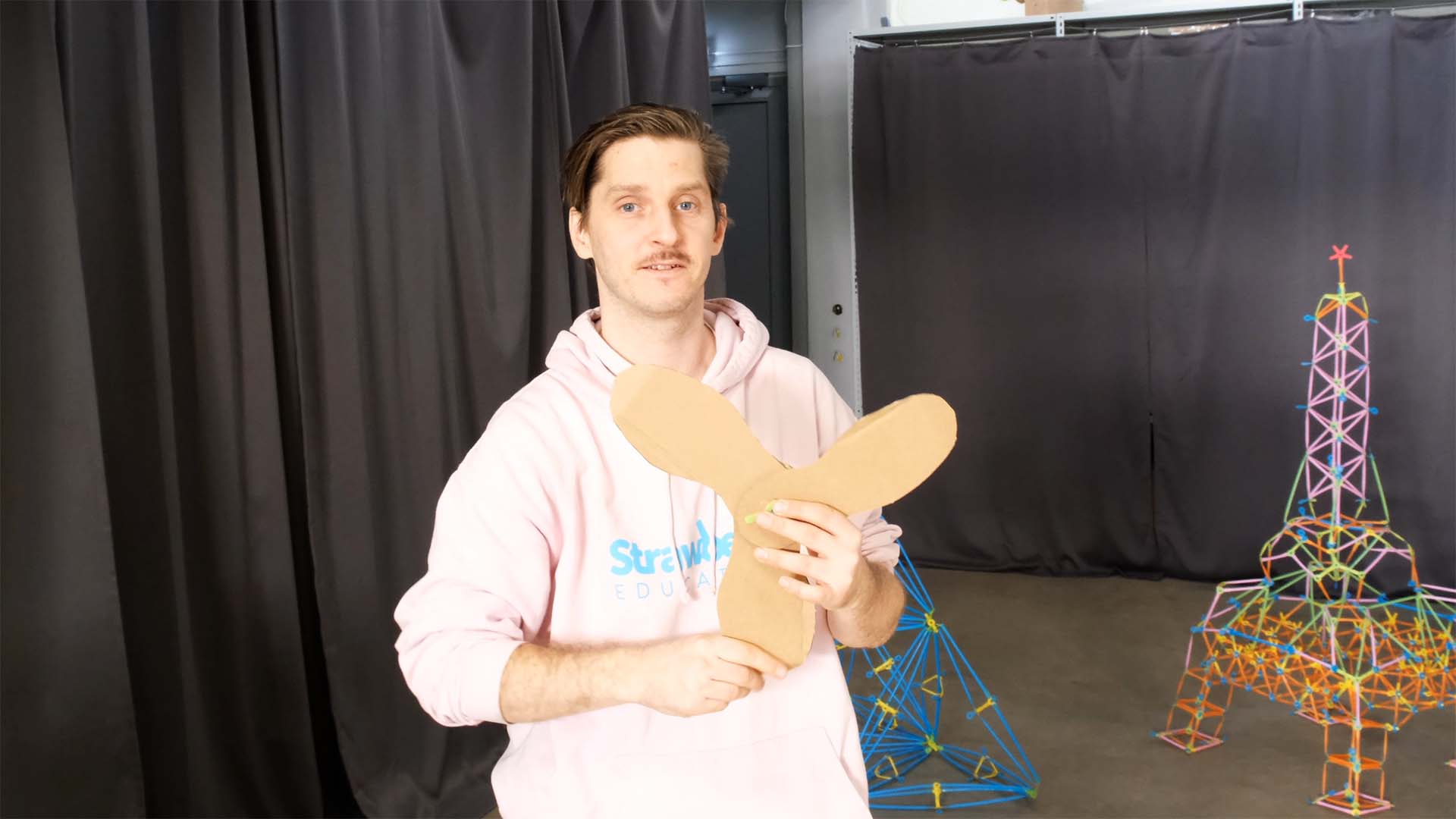 A boomerang is a tool thrown consistently spinning on an axis and eventually returns back to you. While your everyday pair of shoes protect your feet, the shape of the soles also make great airfoil blades for this tri-blade, shoemerang. The cardboard material makes this boomerang design lightweight and stable enough to glide through the air back into your hand.